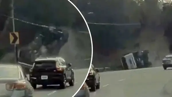 فیلم وحشتناک از ملق زدن کامیون پس از تصادف در اتوبان