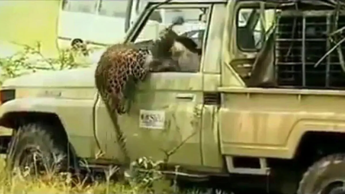 فیلم حمله وحشیانه پلنگ به یک مرد در ماشین