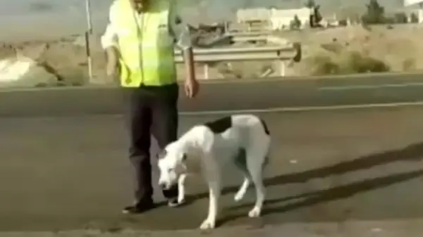 فیلم دیدنی از جان فشانی مامور پلیس برای نجات سگ در اتوبان / انسانیت زیباست
