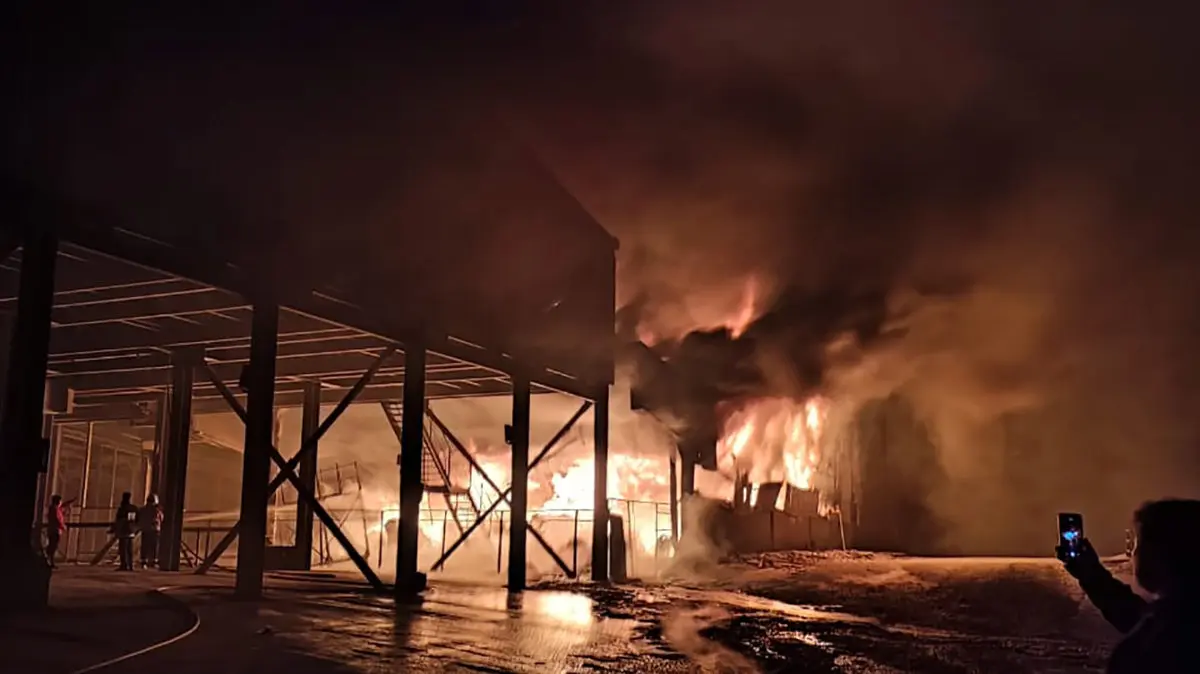 آتش سوزی در کارخانه سیمان ابیک نظرآباد + فیلم
