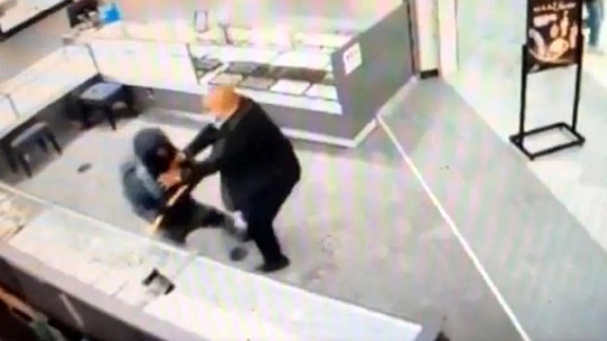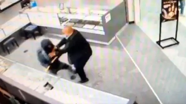 فیلم درگیری مرد جواهرفروش با سارقان مسلح / فرار دزد نقابدار