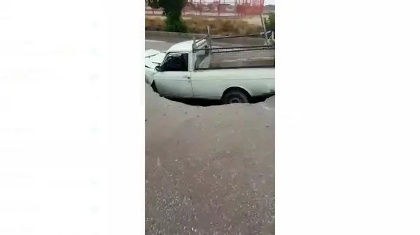 فیلم بلعیده شدن یک وانت پیکان در زمین ! / راننده بدشانس بود یا خوش شانس !؟