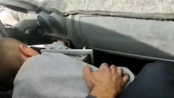 فیلم باورنکردنی از گیرکردن دست پسر بازیگوش در داشبورد ماشین