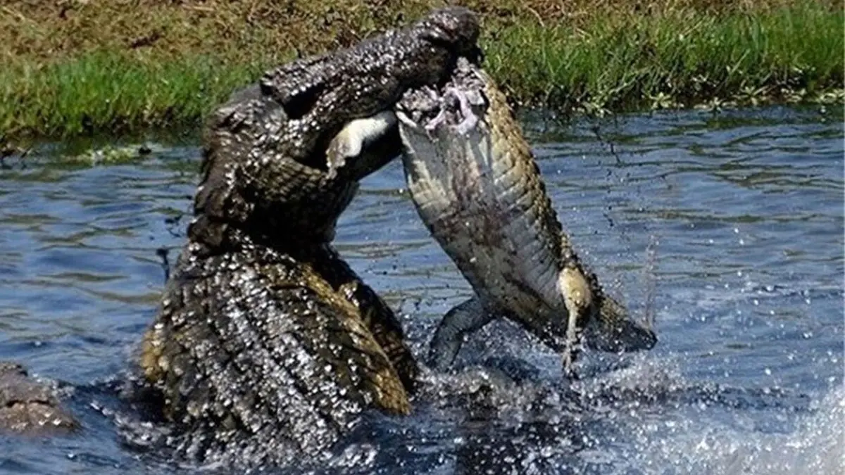 فیلم عجیب دعوای 2 کروکودیل غول پیکر / دست کروکودیل کنده شد