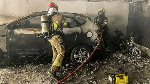 حوادث رکنا: خودروی جک S۵ در پارکینگ ساختمان مسکونی در خیابان میرزای شیرازی در آتش سوخت.