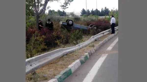 واژگونی پژو در اتوبان بابایی / در برخورد با گاردیل رخ داد+ عکس