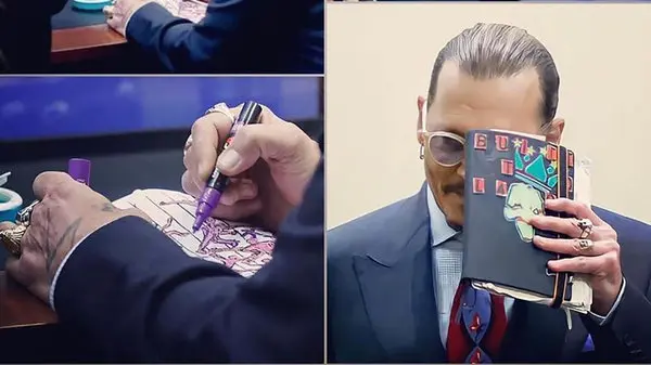 حوادث رکنا: ویدیویی پربازدید از جانی دپ که در طول جلسه دادگاه شکایت از امبر هرد همسر سابقش، مشغول نقاشی کشیدن است.