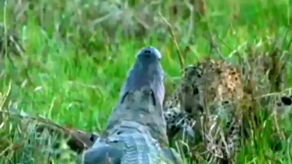 حوادث رکنا : یک کروکودیل برای شکار پلنگ وحشی تمام تلاش خود را به کار گرفت.