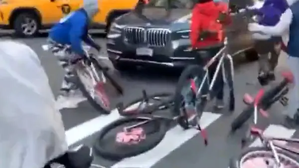 رکنا : چند جوان دوچرخه سوار به یک خودرو در یکی از خیابان های نیویورک آمریکا حمله کردند و به آن آسیب زدند.
