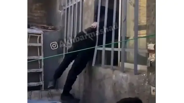 فیلم ناله های دزد بدشانس بین زمین و هوا / بین نرده های پنجره گیر کرده بود + عکس