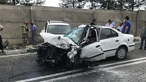 تصاویری ناراحت کننده از تصادف سهمگین یک خودرو سمند با یک خودرو بنز که به دلیل سرعت غیرمجاز رغم خورد را ببینید.