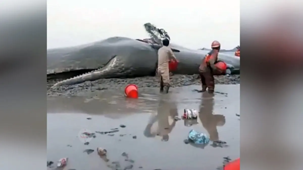 حوادث رکنا: یک وال به گل نشسته در چین نجات یافت.