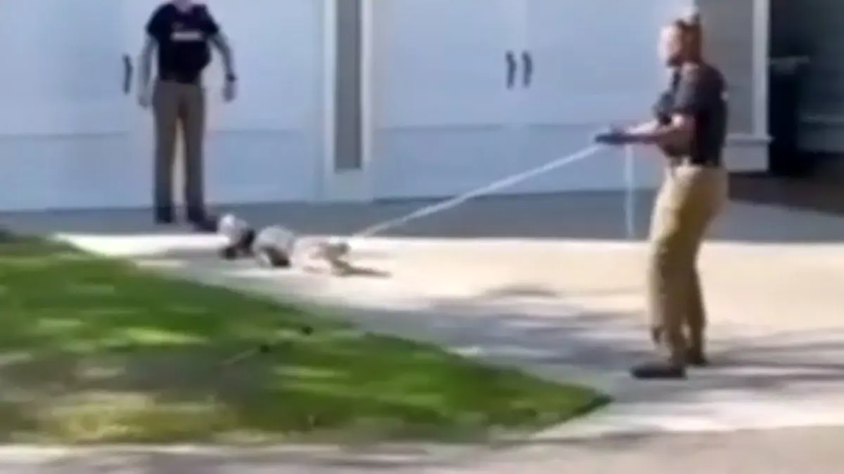 تلاش و کشمکش طولانی نیروهای پلیس و کنترل حیوانات برای گرفتن این تمساح دو متری را در ویدیو ببینید.