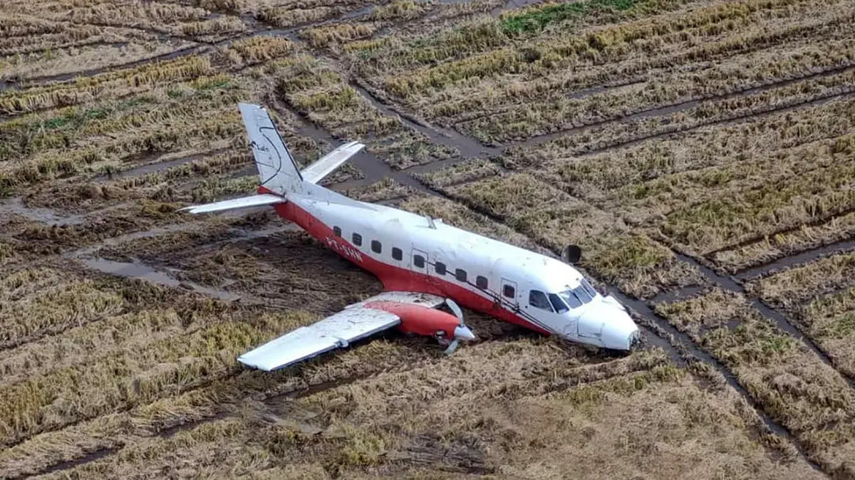 فرود اضطراری هواپیمای شرکت پستی در زمین کشاورزی / موتور از هواپیما جدا شد