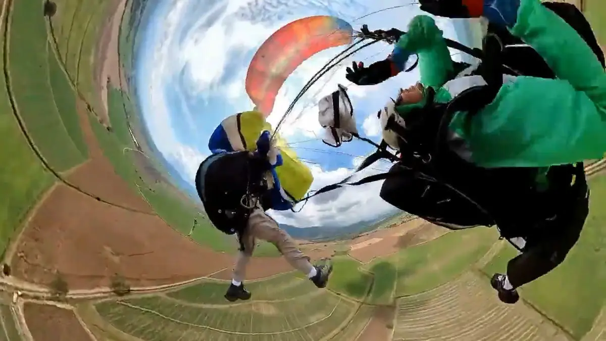 فیلم سقوط هولناک زن و مرد چترباز ! / بین زمین و آسمان بهم گره خوردند!