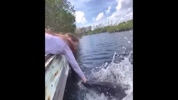 فیلم لحظه بلعیدن دست دختر جوان توسط ماهی غولآسا / ببینید