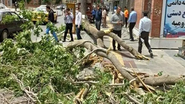 به گزارش رکنا طوفان ارومیه ! / ، این وزش باد که سرعت آن هنوز اعلام نشده ولی تخمین زده میشود که به حدود ۱۰۰ کیلومتر بر ساعت یا بیشتر از آن برسد، موجب شکستن درختان در مناطق مختلف شهر به ویژه مناطق مرکزی شد.