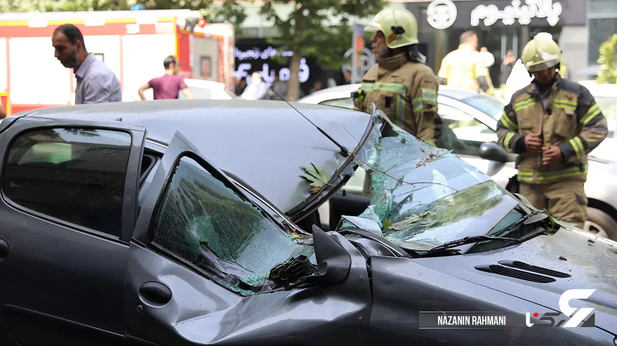 گفتگو با زن جوان که در خیابان شریعتی تهران زنده ماند / درخت تنومند روی خودرویش افتاد + فیلم و عکس