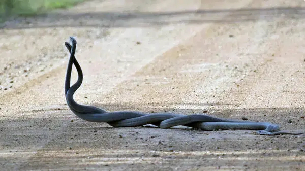 حوادث رکنا: وقتی نرهای مامبای سیاهپوست در نبرد برای با یکدیگر هستند، سر و تا یک سوم بدن خود را بالا میبرند تا رقیب خود را پایین بیاورند و به این نبرد فیزیکی ادامه میدهند تا زمانی که رقیب تسلیم شود.