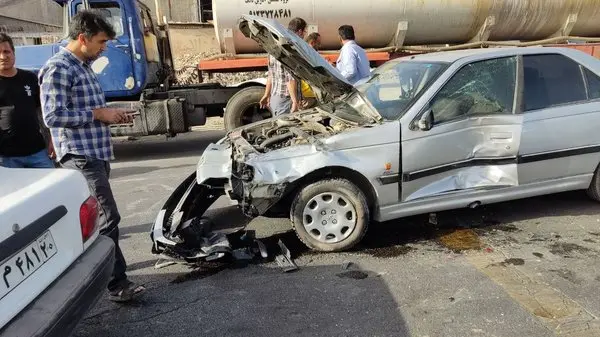 تصادف زنجیره ای محور دماوند - فیروزکوه را بهم ریخت! / برخورد کامیون با 9 خودرو سواری + فیلم و عکس