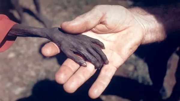 رکنا: اول آوریل ۱۹۸۰، منطقه کاراموجا اوگاندا. یک کشیش کاتولیک دست بسیار نحیف پسری چهار ساله که از سوءتغذیهای مهلک رنج میبرد را بین انگشتان خود گرفته است. این عکس، بهترین عکس سال مطبوعات جهان در سال ۱۹۸۰ شد.