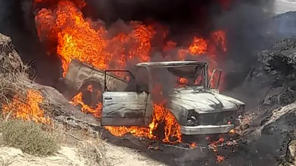 جزغاله شدن راننده نیسان در میناب / نیسان آبی محمول قاچاق سوخت داشت