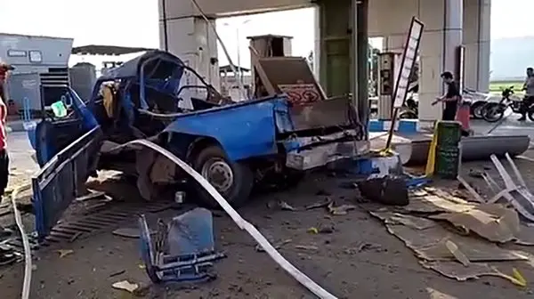 فیلم انفجار مخزن گاز خودروی نیسان در جایگاه سوخت رستم آباد / جایگاه سوخت تعطیل شد