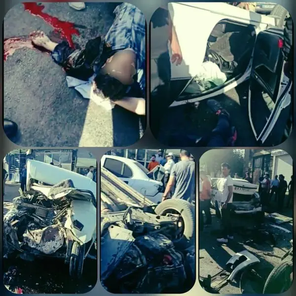 تصادف هولناک 3 خودرو در میدان آزادی کرمانشاه / دست راننده اپتیما قطع شد + فیلم و عکس