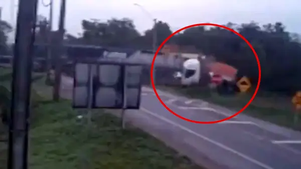 فیلم تصادف هولناک قطار با کامیون / به خیر گذشت + عکس