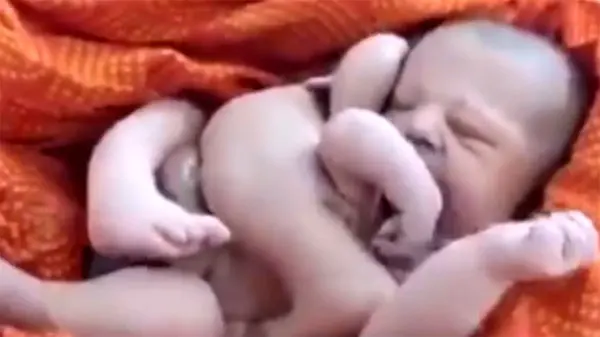 ببینید / تولد عجیب ترین نوزاد با 8 دست و پا + فیلم