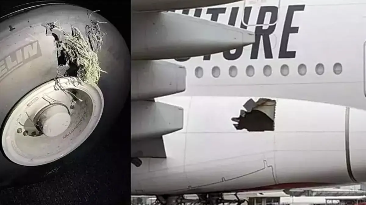 این شرکت هواپیمایی میگوید که سوراخ روی بدنه زمانی ایجاد شد که یکی از لاستیکهای ایرباس ای۳۸۰ اندکی پس از بلند شدن ترکید. هیچ مسافری در این پرواز آسیب ندید و هواپیما طبق برنامهریزی سفر به مقصد رسید.