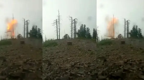 فیلم دیدنی از لحظه پودر شدن یک درخت توسط صاعقه / ببنید