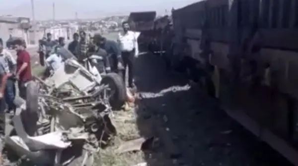 فیلم تصادف قطار باری با پیکان در مراغه/ پیکان مچاله شد + عکس