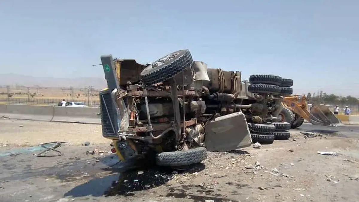 انحراف کامیون تصادف زنجیره ای راه انداخت / حادثه ساوجبلاغ ۳ مصدوم داشت + فیلم