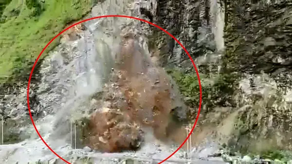 فیلم فرار مویی مسافران از ریزش کوه در جاده ! / ببینید