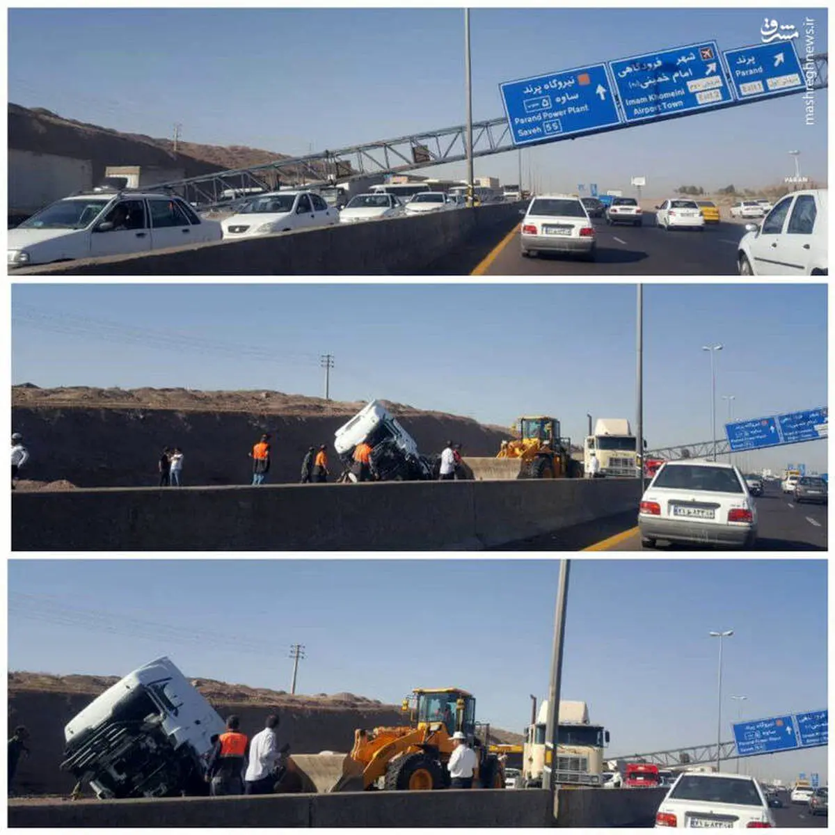 عکس عجیب از سقوط تابلوی مسیریاب آزادراه تهران ساوه / علت چه بود؟ / همه شوکه شدند
