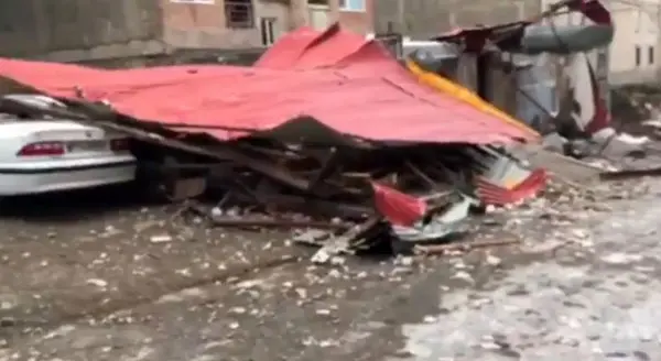 فیلم سقوط سقف خانه بر روی چند خودرو در رودهن