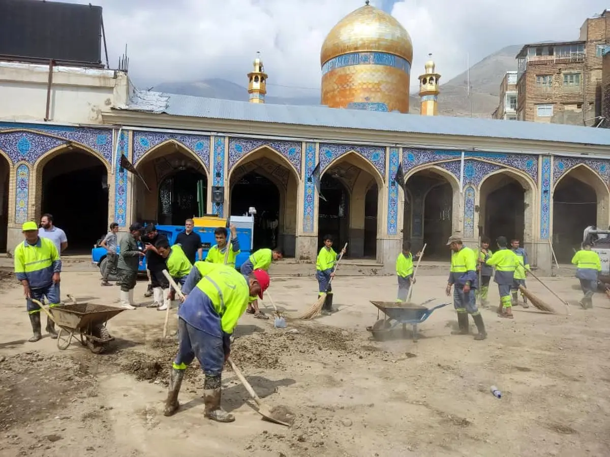 فیلم پاکسازی ضریح و صحن امام زاده داوود سه روز بعد از سیل / ادامه امدادرسانی گسترده نیروهای امدادی