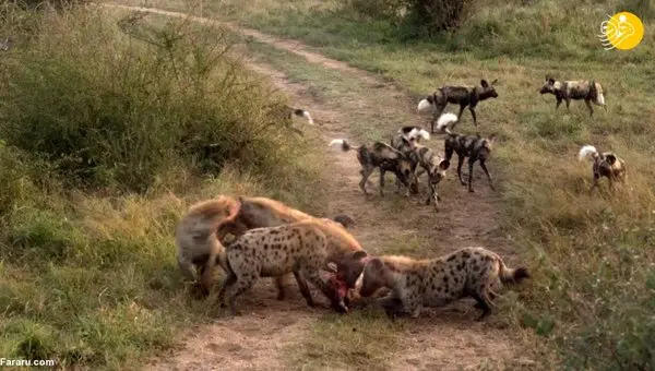 فیلم نبرد بین سگهای وحشی کفتارها، اسب آبی و ۲ ایمپالا + ببینید
