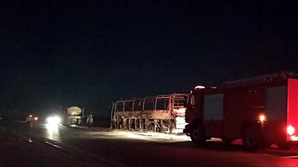 آتش سوزی به جان اتوبوس مسافربری/ در محور خور- طبس رخ داد