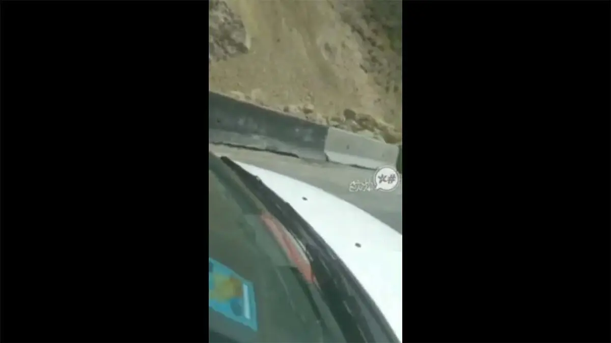 فیلم عجیب از ریزش سنگ عظیم در جاده هراز / مسیر را بست