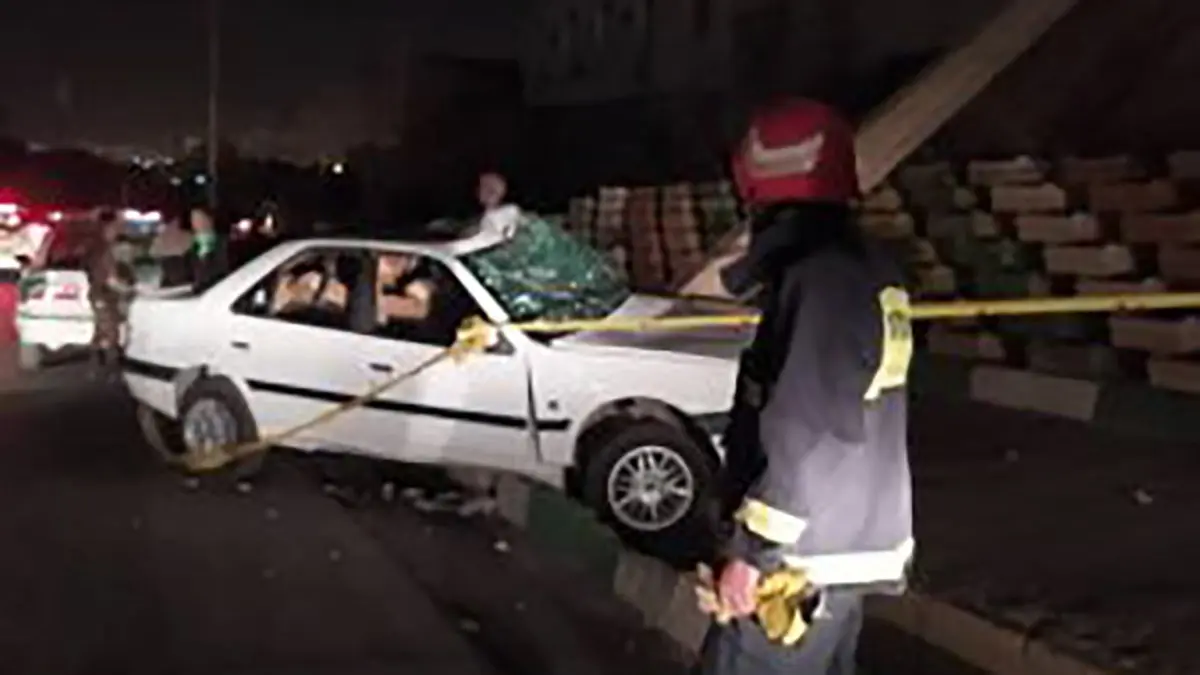تصادف هولناک پژو با تیرچراغ برق در کرمانشاه + عکس