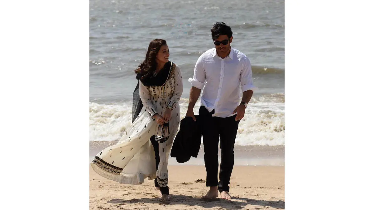 پیاده روی ساحلی محمدرضا گلزار با پای برهنه با بازیگر زن معروف +عکس