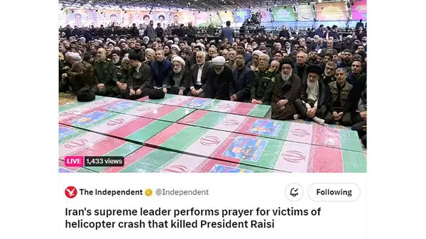 به گزارش رکنا، خبرگزاری «رویترز» و «ایندیپندنت» انگلیس مراسم تشییع پیکر شهید آیتالله رئیسی، شهید امیرعبداللهیان و همراهان در تهران را به صورت زنده پوشش میدهند.