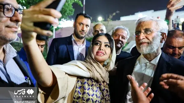 تصویر سلفی یک خانم باسعید جلیلی در یزد