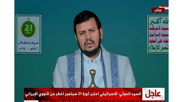 رهبر انصارالله یمن بیان کرد: موضع اسرائیل در قبال انقلاب ۲۱ سپتامبر و دشمنی با آن به درجه ای بود که آنرا خطرناکتر از موضوع هسته ای ایران قلمداد کرد. ملت ما با انقلاب ۲۱ سپتامبر آزادی و استقلال خود را به دست آوردند. آمریکا و اسرائیل و سرسپردگانش طی سالهای گذشته به دشمنی علیه ملت ما پرداختند. آنها شنیع ترین جنایات را علیه ملت ما مرتکب شدند و آنرا تحت محاصره کامل قرار دادند. پروژه متجاوزان اشغالگری، سیطره و مصادره آزادی و استقلال ملت ما بود.