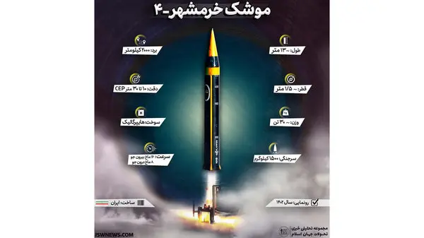 رکنا سیاسی : خرمشهر و دیگر موشکهای برد متوسط ایران که بیش از ۱۲۰۰ کیلومتر برد داشته باشند قادر به هدف قرار دادن اسرائیل هستند. چرا که از مناطق غربی ایران فاصله تا دورترین نقطه در جنوب اسرائیل، کمی بیش از ۱۲۰۰ کیلومتر محاسبه میشود. موشک خرمشهر ۴ تا کنون در جریان دو عملیات پیشین ایران علیه اسرائیل مورد استفاده قرار نگرفته است.