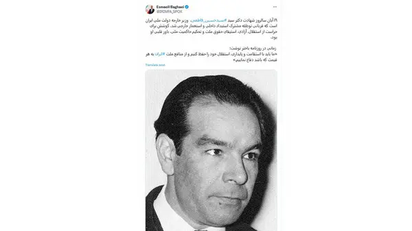 رکنا: ۱۹ آبان سالروز شهادت دکتر سید سیدحسین فاطمی، وزیر خارجه دولت ملی ایران است که قربانی توطئه مشترک استبداد داخلی و استعمار خارجی شد. کوشش برای حراست از استقلال، آزادی، استیفای حقوق ملت و تحکیم حاکمیت ملی، باور قلبی او بود.