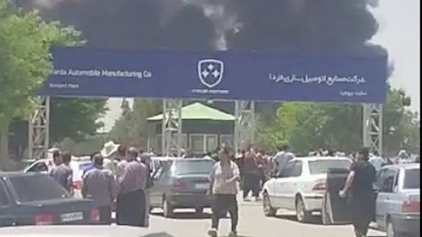 14:18 - خودروسازی فردا در اشترینان در 35 کیلومتری شهر بروجرد در استان لرستان نیز مورد حمله قرار گرفت. دود غلیظی از داخل محوطه این مجموعه بلند شده است.