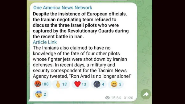 این خبر در حالی منتشر شده است که مقامات اسرائیلی تاکنون واکنشی رسمی به آن نشان ندادهاند اما ترامپ نیز اسارت خلبانان اسرائیلی را تایید کرده است.